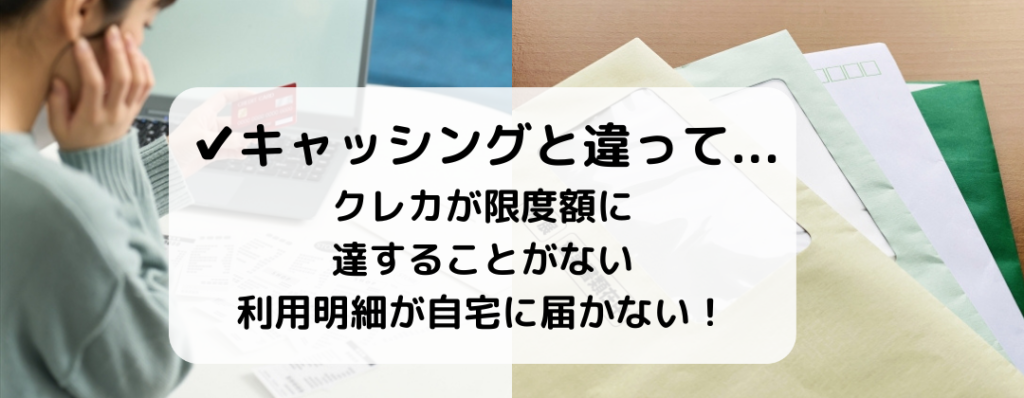 キャッシングでお金を借りると、クレジットカードの利用限度額も減ってしまいます。カードローンを使えば、このようなクレカが使えない事態を避けることもできますし、明細書はWEB明細書なので自宅に届いてバレることもありません。