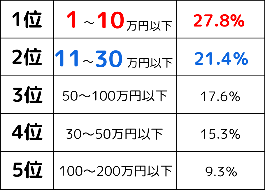 『5万円だけ借りたいけど、少額だと借りられなさそう』と心配する人も多いですが、実際は半数以上が30万円以下の借入をしています。