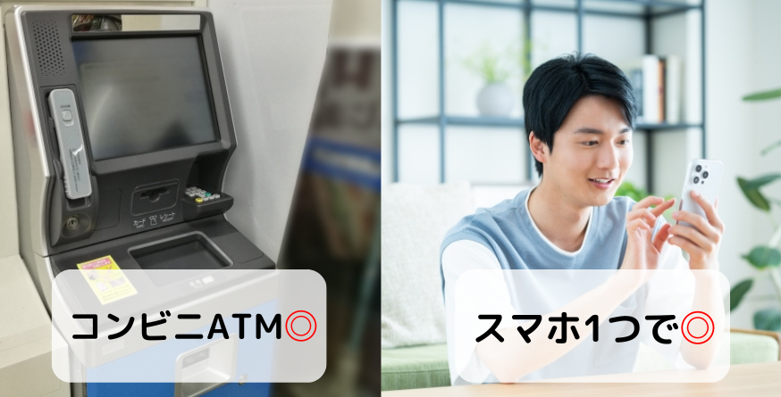 一度申し込みしておけば、急な出費がある時にいつでもコンビニATMやスマホから現金を引き出すことができます。